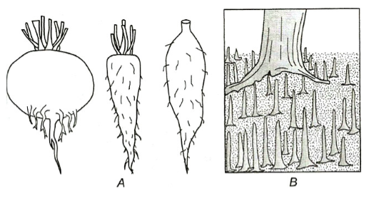 12.Select the correct statements. I. From the region of elongation, some of the epidermal cells from root hairs. II. Pneumatophores are seen in Rhizophora. III. Adventitious roots are seen in the banyan tree. IV. Maize and sugarcane have prop roots.