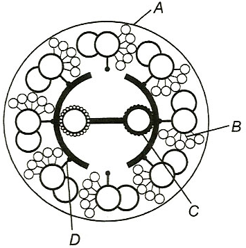 19.Identify A to D in the diagrammatic representation of internal structure of centrioles