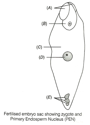 38.Diagram showing entry of pollen tube to the embryo sac. Identify A to G in the diagram