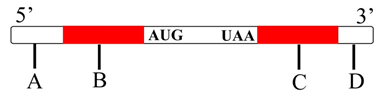 33.Identify A, B, C, D in the following representation of m-RNA of eukaryotes