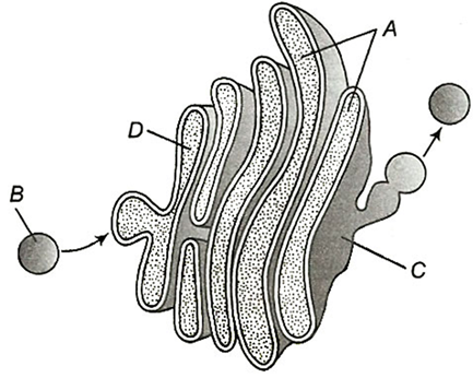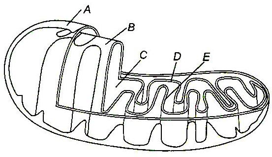 31.Go through the sectional view of a mitochondrion showing the different parts and identify the structures A to E