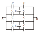 175.The effective capacitance of combination of equal capacitors between points A and B shown in figure is